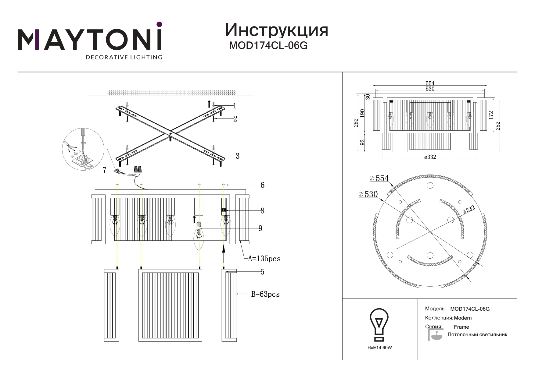 Данную модель MOD174CL-06G с быстрой доставкой спешите купить по цене 48 490 ₽ в магазине 220svet.ru