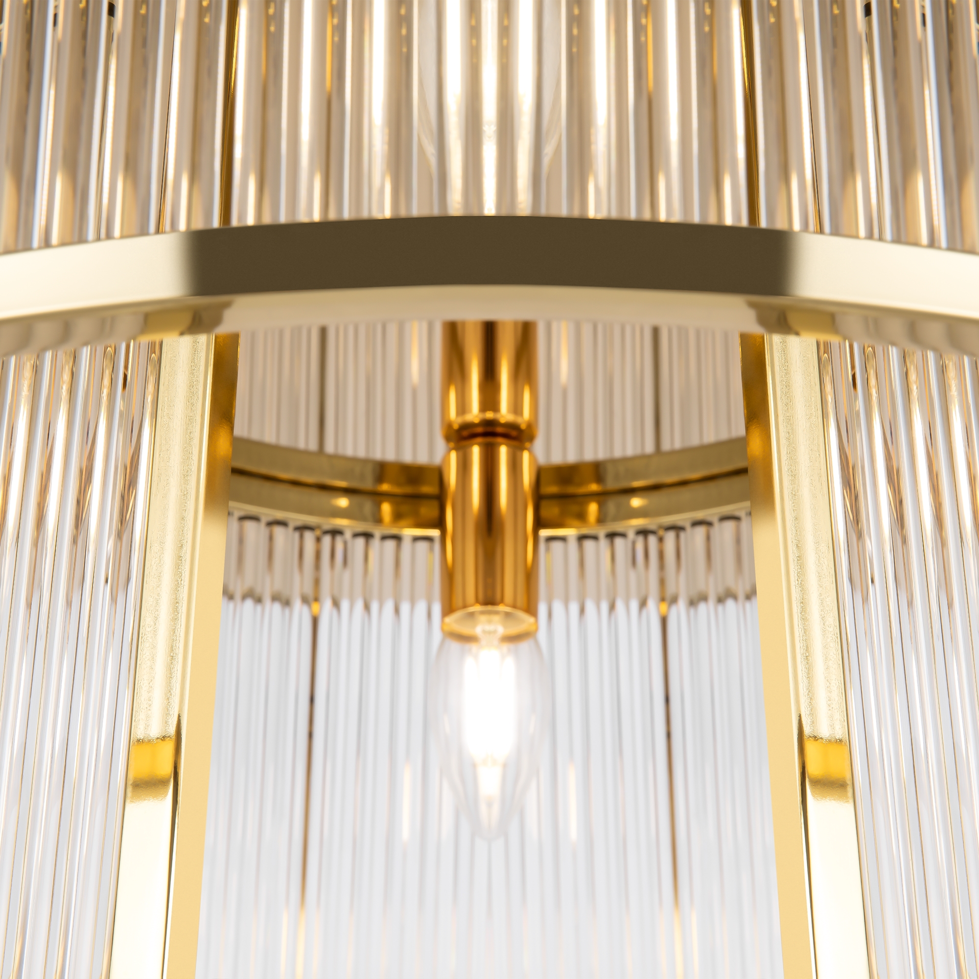 Материал арматуры - металл, цвет - золото. Декоративный элемент из прозрачного стекла в форме рельефных трубок. Цоколь Е14. Лампы в комплект не входят.