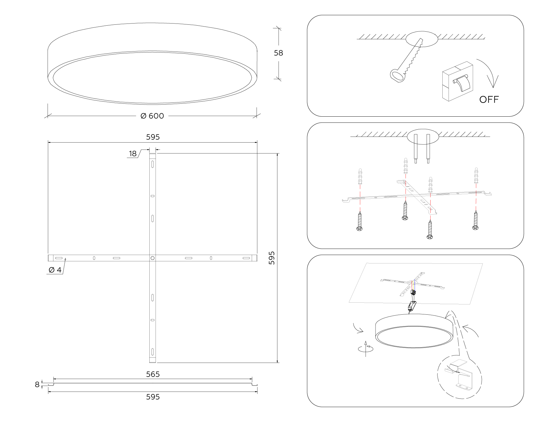 - Диаметр: 600 мм (60 см)