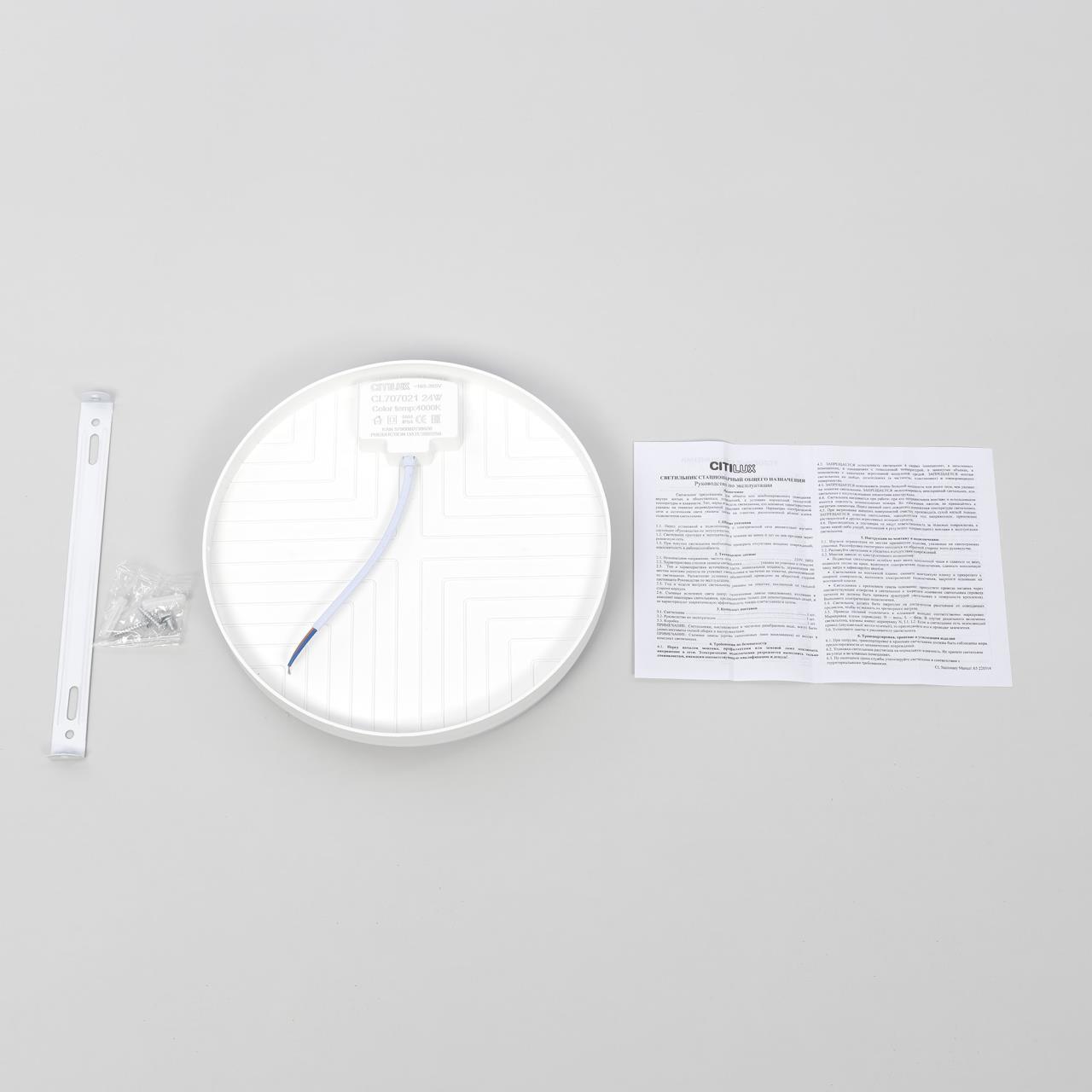 Накладной светодиодный светильник CL707021 от производителя Citilux принадлежит к серии Люмен выполнен в современном стиле. Светильник таблетка, плоский, круглой формы, цвет белый матовый. Основание из ударопрочного полимера, плафон из оптического полимера. Мощность 24Вт, световой поток 2200Лм, цветопередача (CRI)> 80, цветовая температура 4000К (нейтральный белый свет), класс защиты IP54. Свет равномерный, без мерцания и пульсаций, безопасен для глаз. Диаметр 22см, высота 4см, осветит до 9м². Влагозащищённый светильник Citilux Люмен CL707021 прекрасный вариант основного и дополнительного освещения современных туалетов, ванных комнат и совмещённых санузлов , страна бренда Дания . Купить модель CL707021 спешите в интернет магазине 220svet.ru
