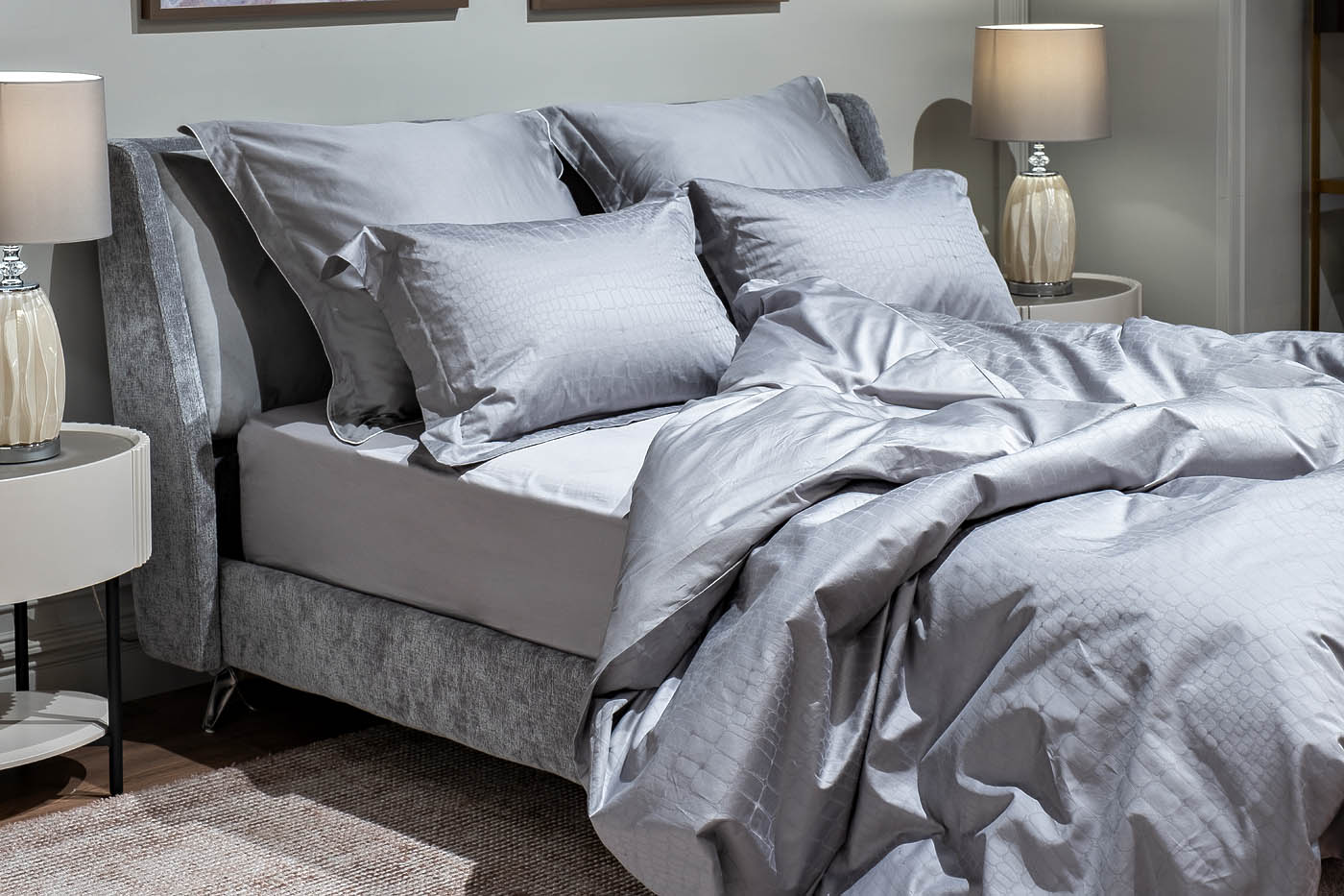 Ткань для постельного белья- это 100% хлопок (Сатин 300ТС), которая имеет шелковистый блеск. Ее еще называют «шелковый хлопок». Она плотная и мягкая, вместе с тем качественная и износостойкая. Только хлопок позволяет вашей коже дышать пока вы спите: он мягкий, гигроскопичный и не электризуется. Ни один другой материал, даже самый высокотехнологичный, не может сравниться по этим свойствам с натуральным хлопком. Уход: Машинная стирка при максимальной температуре 40С, мягкий режим. Стирать моющими средствами для цветных тканей. Не отбеливать. Барабанная сушка возможна, обычная температура. Гладить с изнаночной стороны при максимальной температуре утюга. Сухая химчистка запрещена.