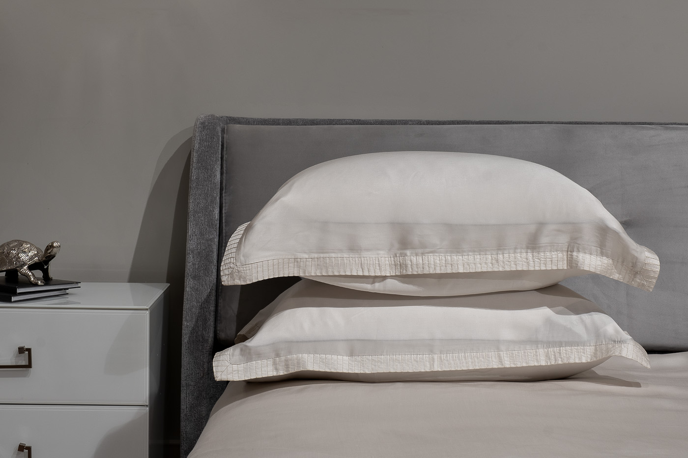 Простыня сшита из 100% ткани тенсель. Ткань изготовлена из экологически чистого волокна лиоцелл, полученного из древесины эвкалипта. Ткань мягкая, немного блестящая, как шелк, но при этом – не скользкая и легкая, как хлопок. Она отлично пропускает воздух и впитывает влагу, гипоаллергенна.
