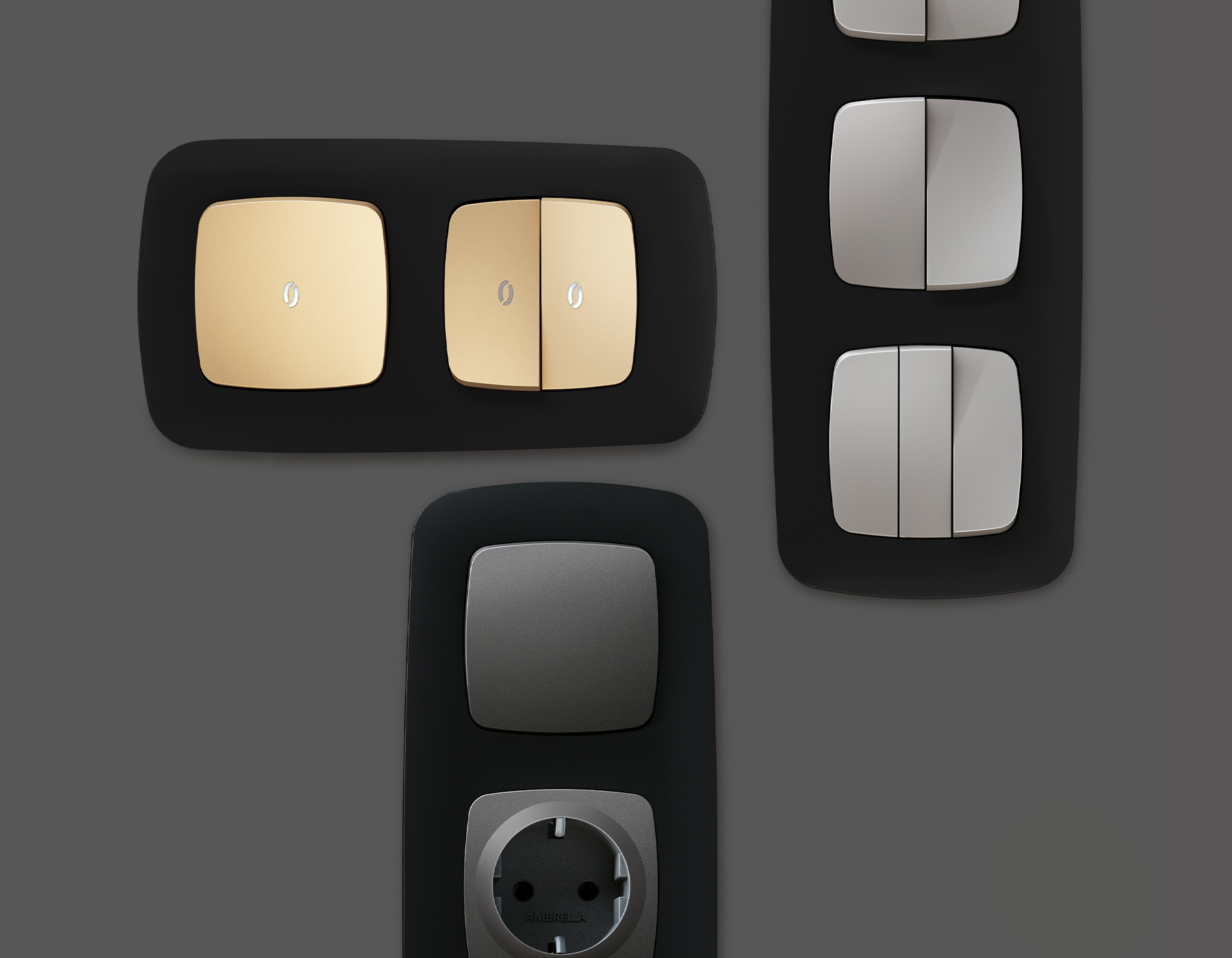 Многогранный ассортимент Ambrella Volt включает в себя механизмы, лицевые панели и рамки, а также комплекты, доступные в различных цветовых решениях. Продукция представлена в модульном исполнении, что позволяет гибко настраивать внешнийвид и функциональность. Вам будет легко заменить лицевую панель, рамку или механизм, найдя идеальное сочетание цветов.