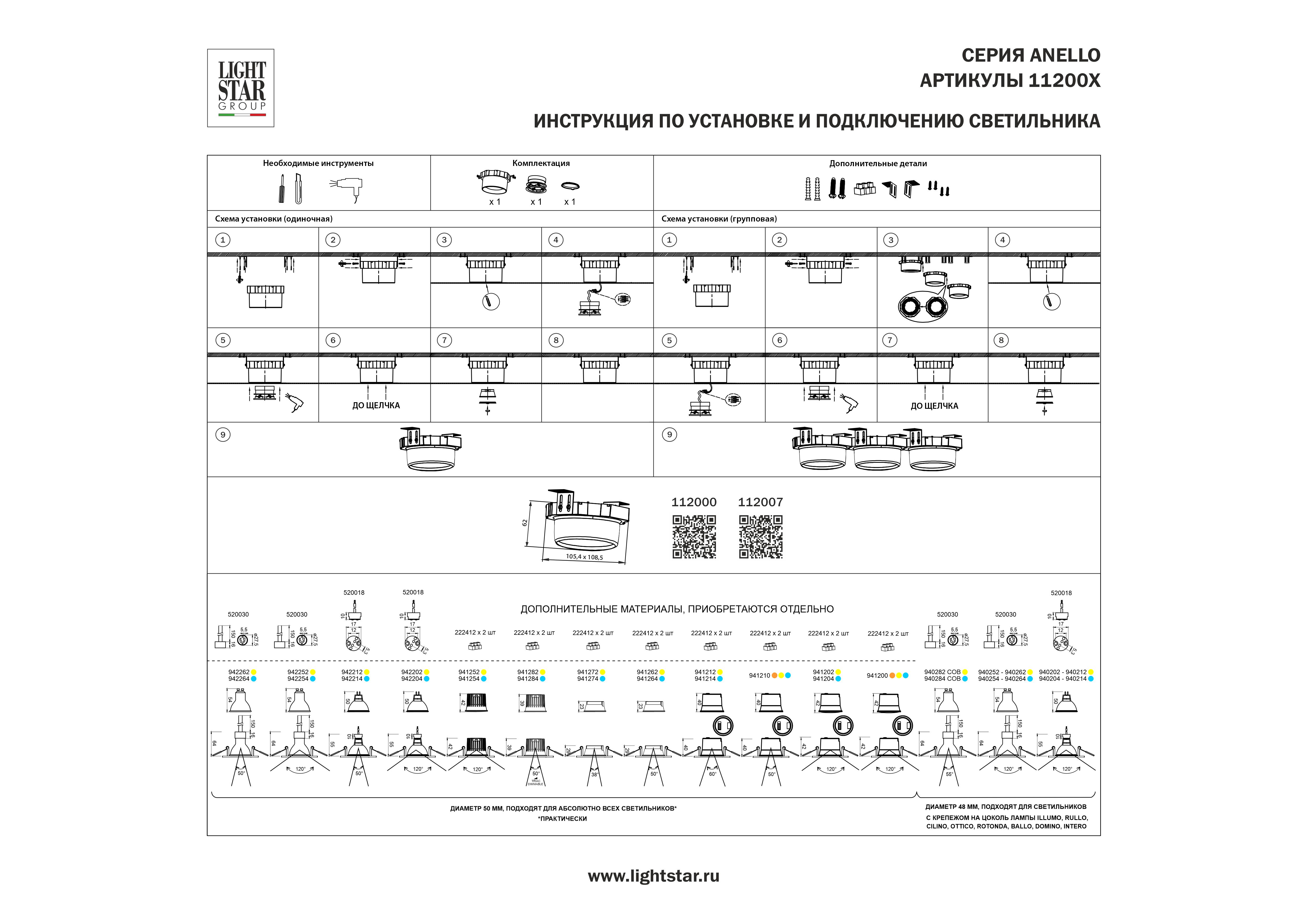 Комплектующие Lightstar 112000 Белые в Димитровграде