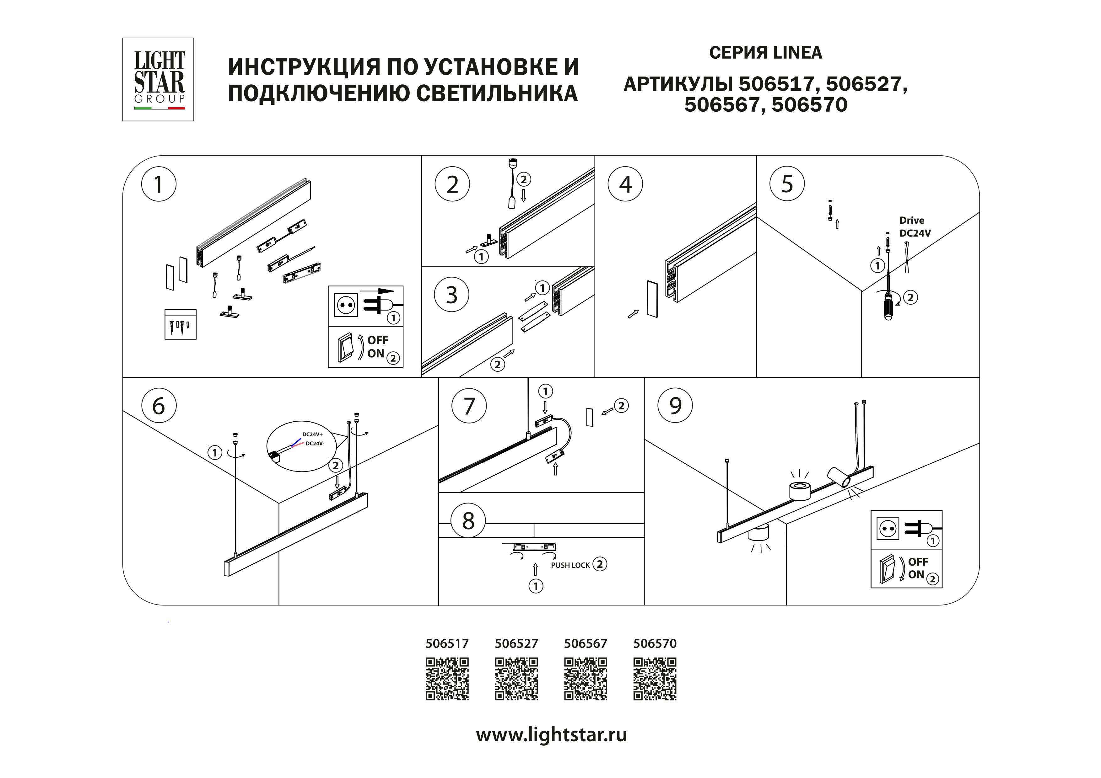 Шинопровод вверх-вниз однофазный накладной-подвесной Lightstar Linea 506527 в Димитровграде