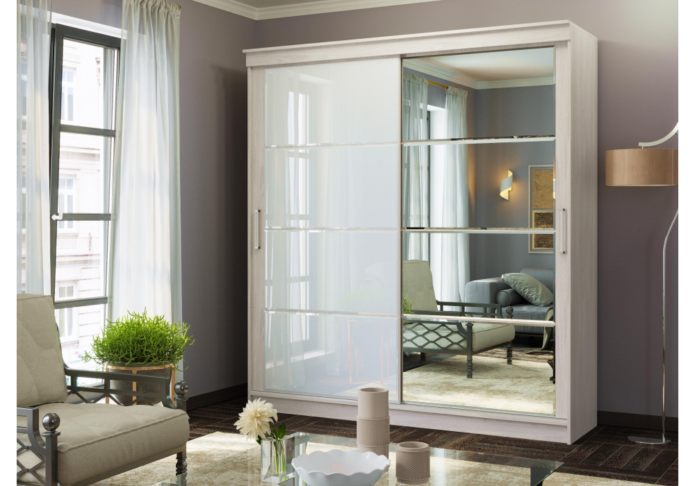 Шкаф-купе Woodville Москана-2 анкор светлый / зеркало / лакобель белый 614770 в Димитровграде