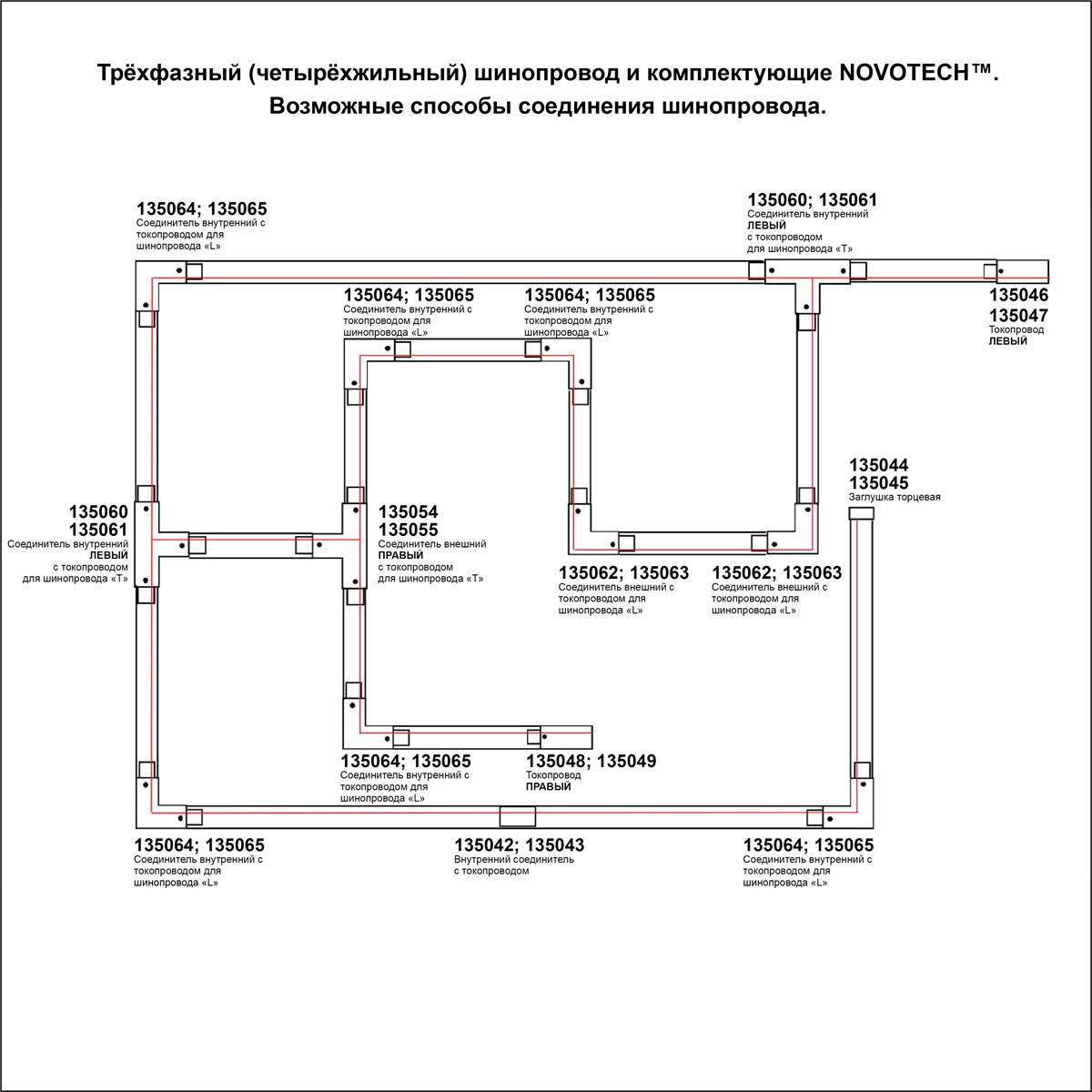Купить "Соединитель L внешний с токопроводом для трёхфазного шинопровода Novotech 135063"