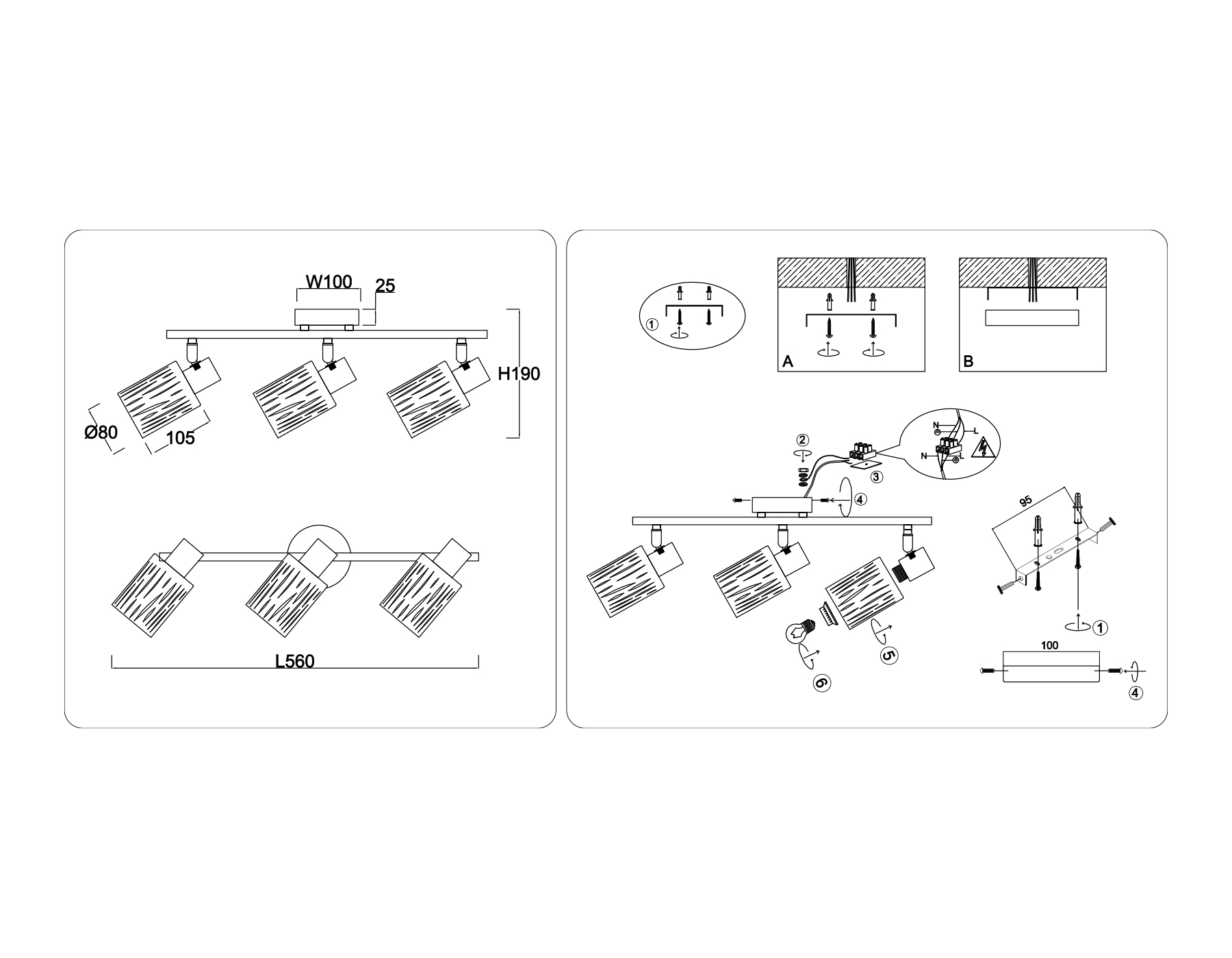 - Количество плафонов: 3