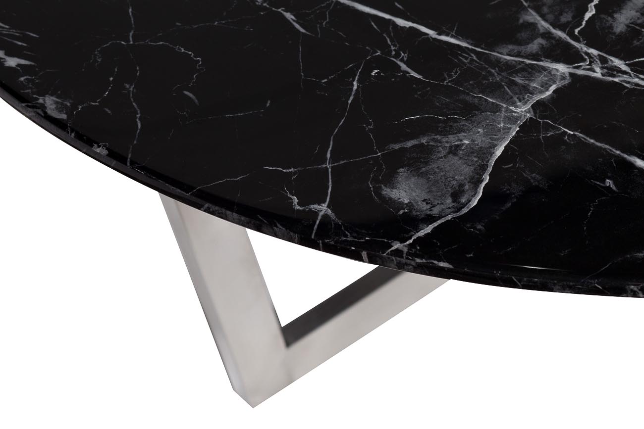 Благородную красоту журнального стола Nero 33FS-CT2029BS со столешницей из МДФ с мраморным принтом черного цвета с белыми прожилками и основанием из нержавеющей стали цвета матовый хром оценят люди с тонким художественным вкусом. Элегантный дизайн и превосходное качество столика помогут ему органично вписаться как в интерьер кабинета, так и в будуар или гостиную. Толщина столешницы - 25мм. Журнальный стол прекрасно сочетается с обеденным столом арт. 33FS-DT19F335-BS и столиком арт. 33FS-ET2029-BS.