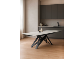 Керамический стол Woodville Блэкберн 160(220)х89 белый мрамор snow white / черный 625943