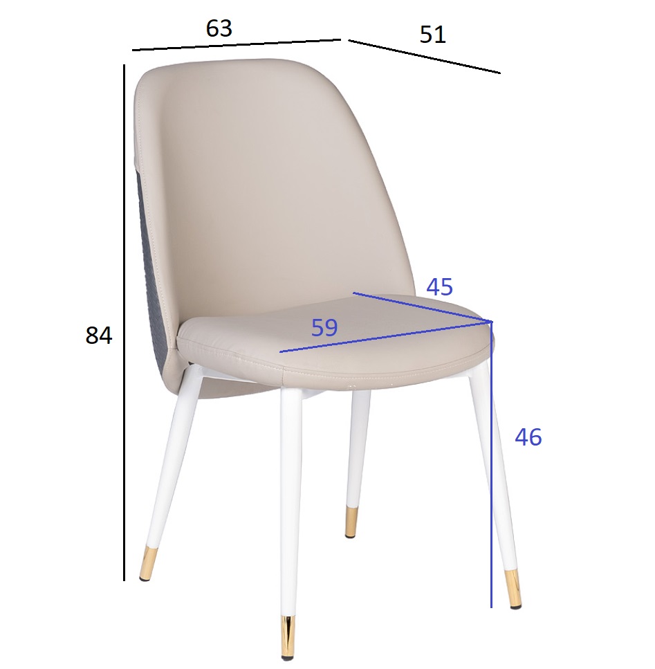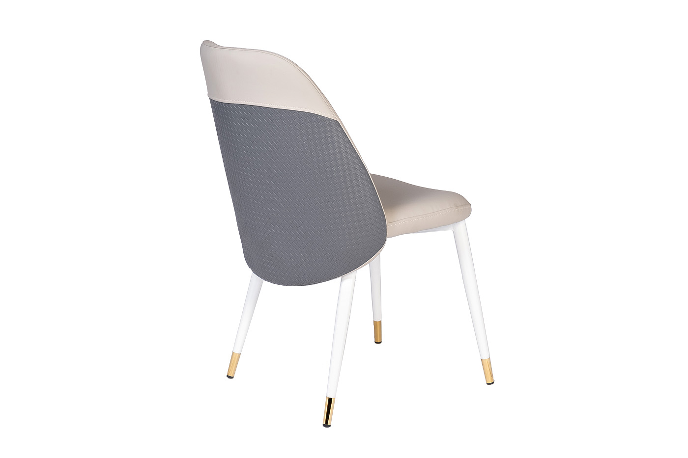 Обеденный стул из практичной экокожи красивого бежевого оттенка прекрасно впишется в кухню или столовую в светлых тонах. Спинка стула отделана темно-серой экокожей с тиснением; в комбинации с белыми ножками и золотыми наконечниками это придает стулу особый шарм и позволяет использовать его для смелых дизайнерских решений.