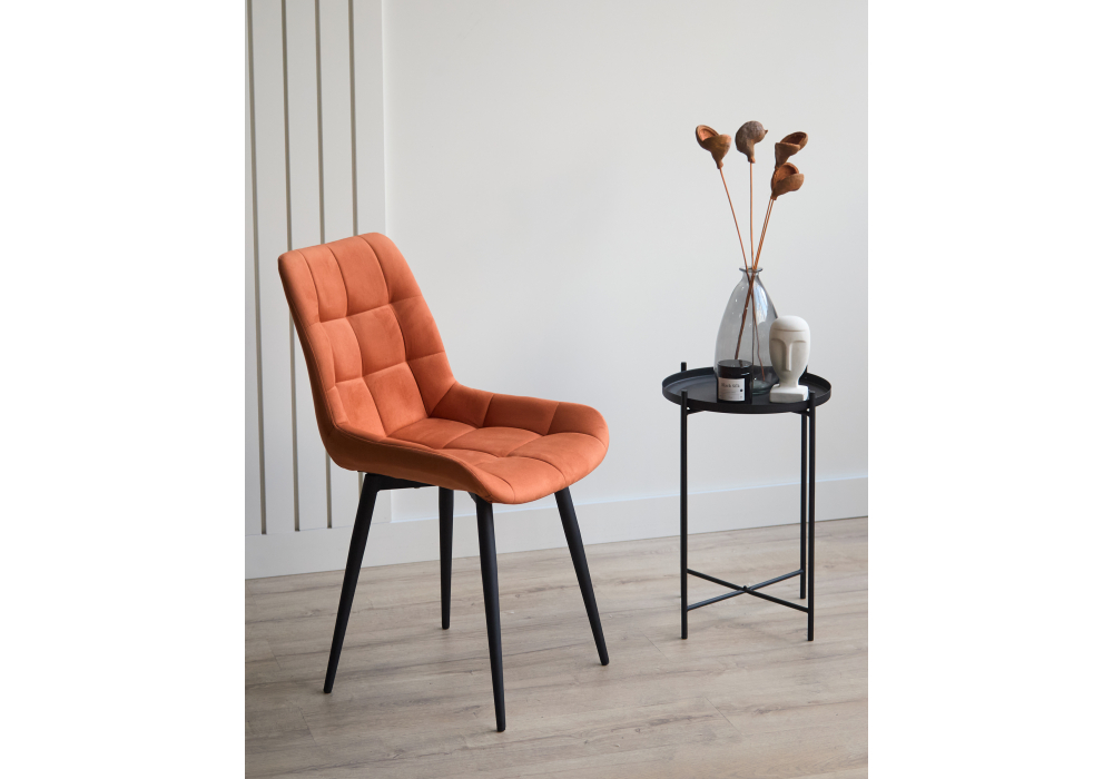 Материал каркаса - металл; Материал сиденья - велюр; Материал обивки - велюр; Цвет ножек - черный; Ширина - 50; Глубина - 60; Высота - 80; Ширина сиденья - 44; Глубина сиденья - 41; Высота сиденья - 48;