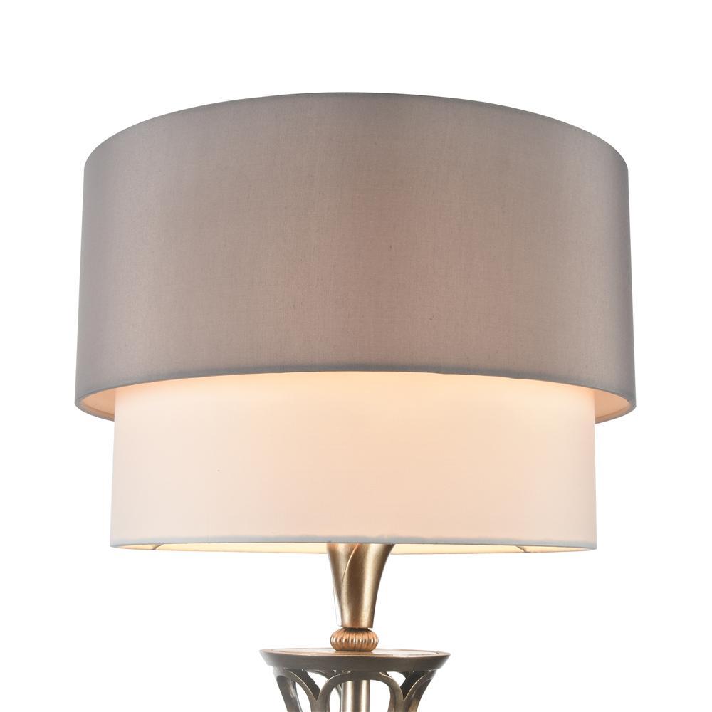 Великолепная модель золотого, серого цвета изготовлена из металла. Плафон - цилиндрический, выполнен из ткани. Стиль торшера - арт-деко,  он отлично подойдёт для спальни,  создаст уют и камерность, может служить, как для декоративного освещения, так и для функционального освещения места для чтения книги, например.