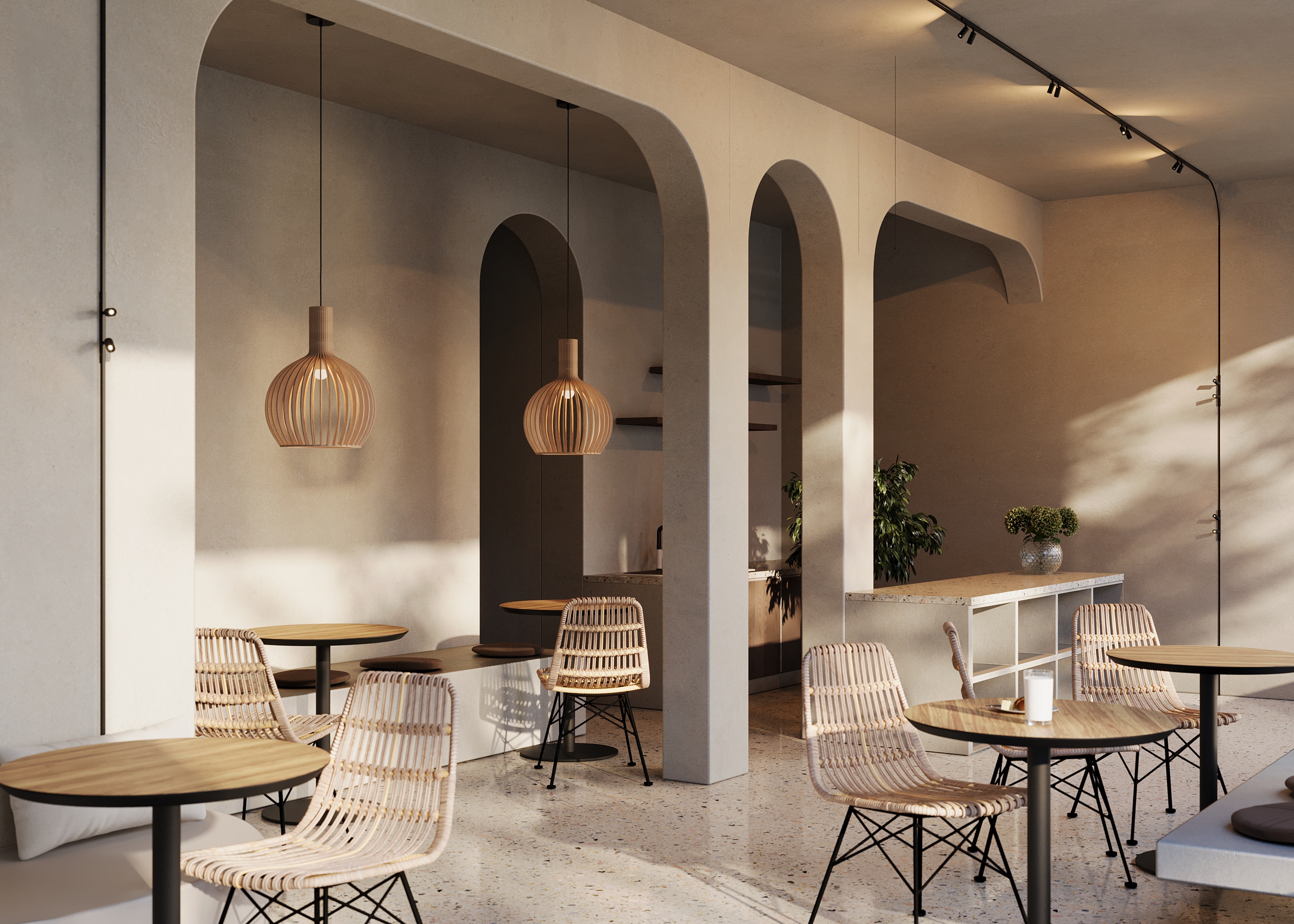 Черная арматура с глянцевой поверхностью выполнена из алюминия. Плафоны могут вращаться независимо друг от друга, обеспечивая точечное освещение зон. Две модели — в спотовом или подвесном исполнении. LED-источники поддерживают переменную цветовую температуру в диапазоне от 3000К до 6000К. При использовании стандартных блоков питания без функции управления, светильники при установке в трек одной стороной имеют цветовую температуру 3000K, а при установке другой стороной – 6000К. Светильники поддерживают функцию группового диммирования и регулировки цветовой температуры при использовании блоков питания по протоколам Bluetooth Mesh или DALI.