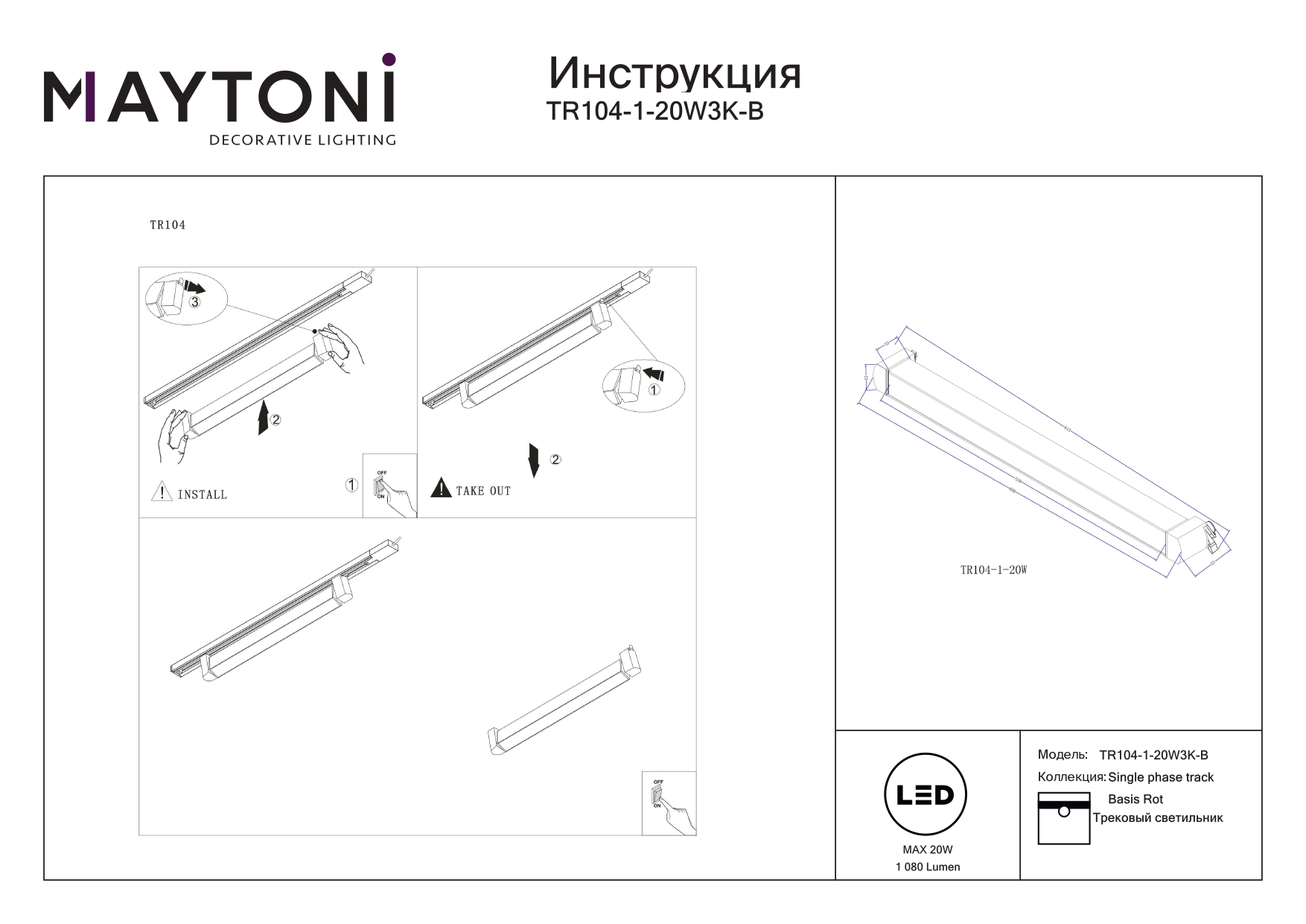 Все характеристики TR104-1-20W3K-B