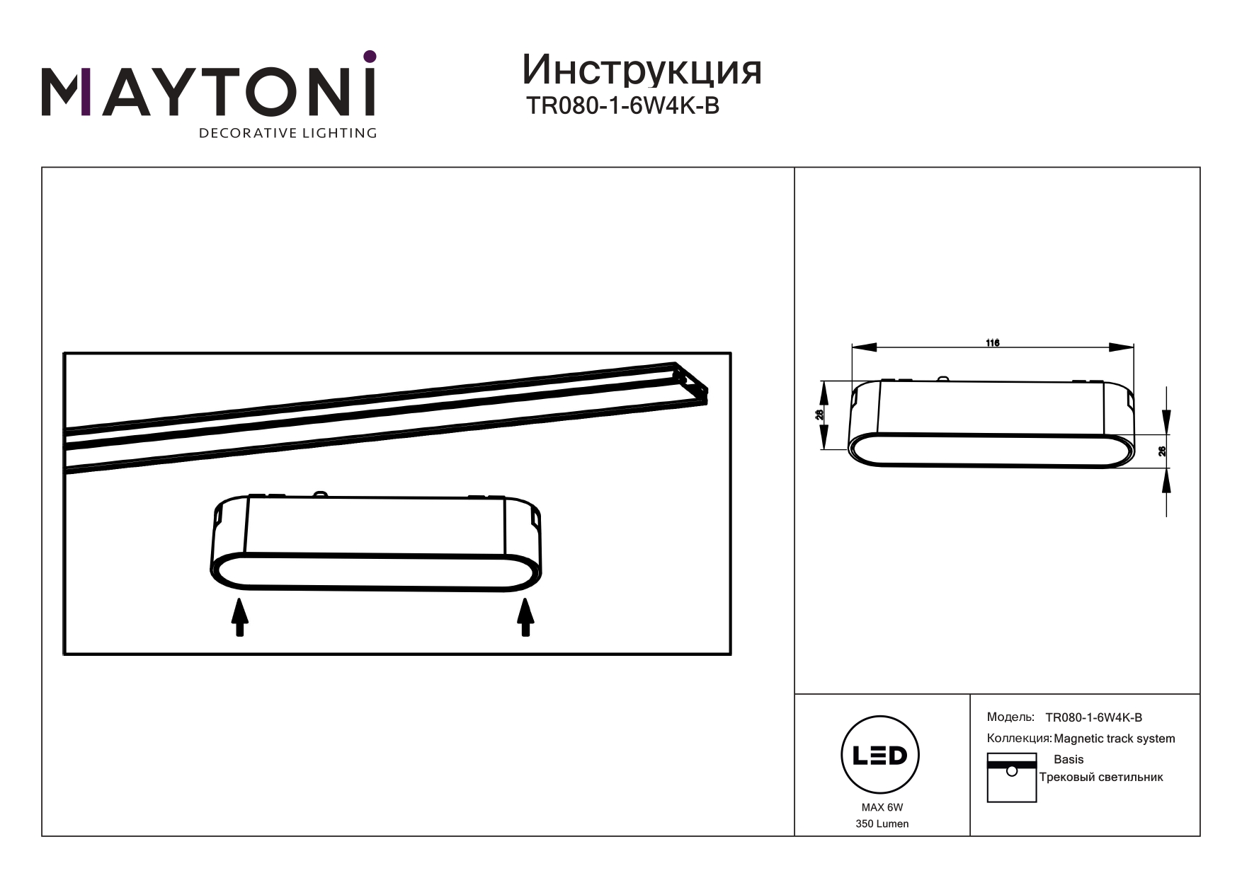 Трековый магнитный светодиодный светильник Maytoni Basis TR080-1-6W4K-B в Димитровграде