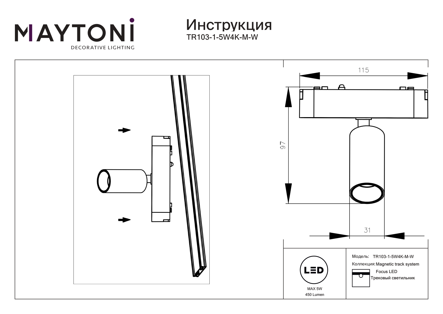 Все характеристики TR103-1-5W4K-M-W
