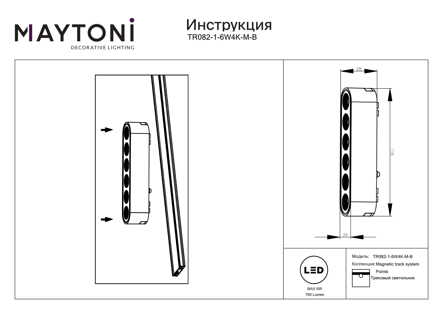 Купить "Трековый магнитный светодиодный светильник Maytoni Points TR082-1-6W4K-M-B"