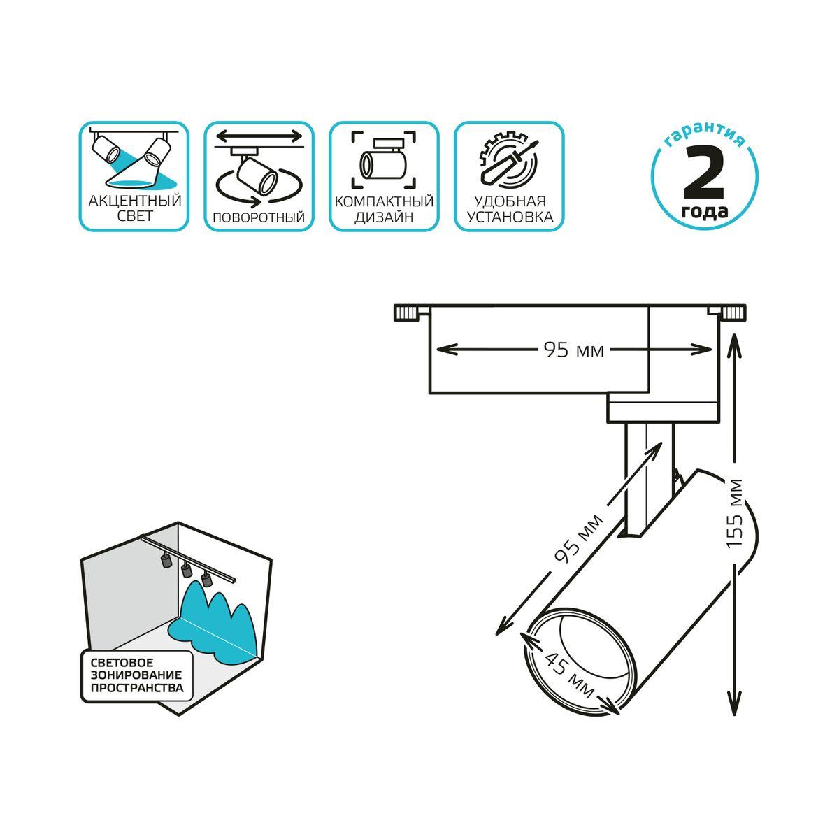 Купить "Трековый светодиодный светильник Gauss Track Light Led TR077"
