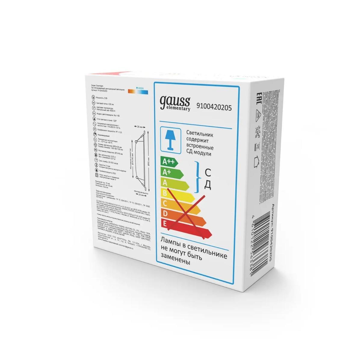 Купить "Встраиваемый светильник Gauss Elementary Downlight 9100420205"