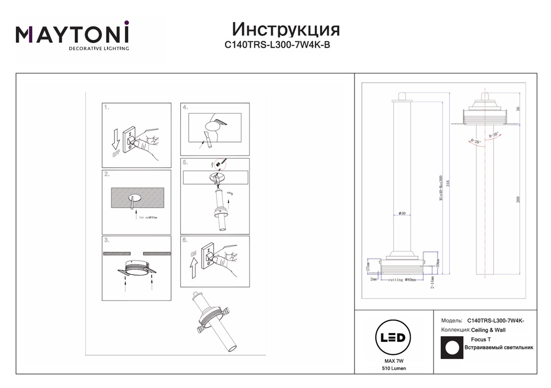 Все характеристики C140TRS-L300-7W4K-B