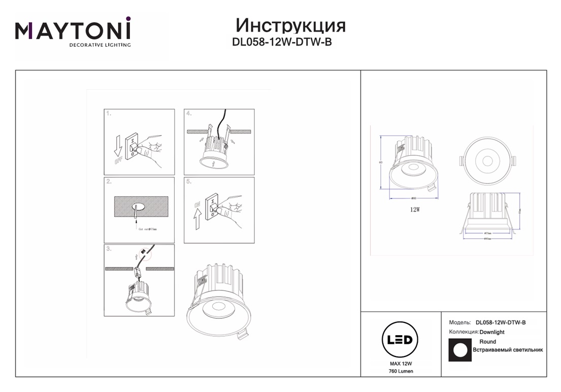 Описание DL058-12W-DTW-B